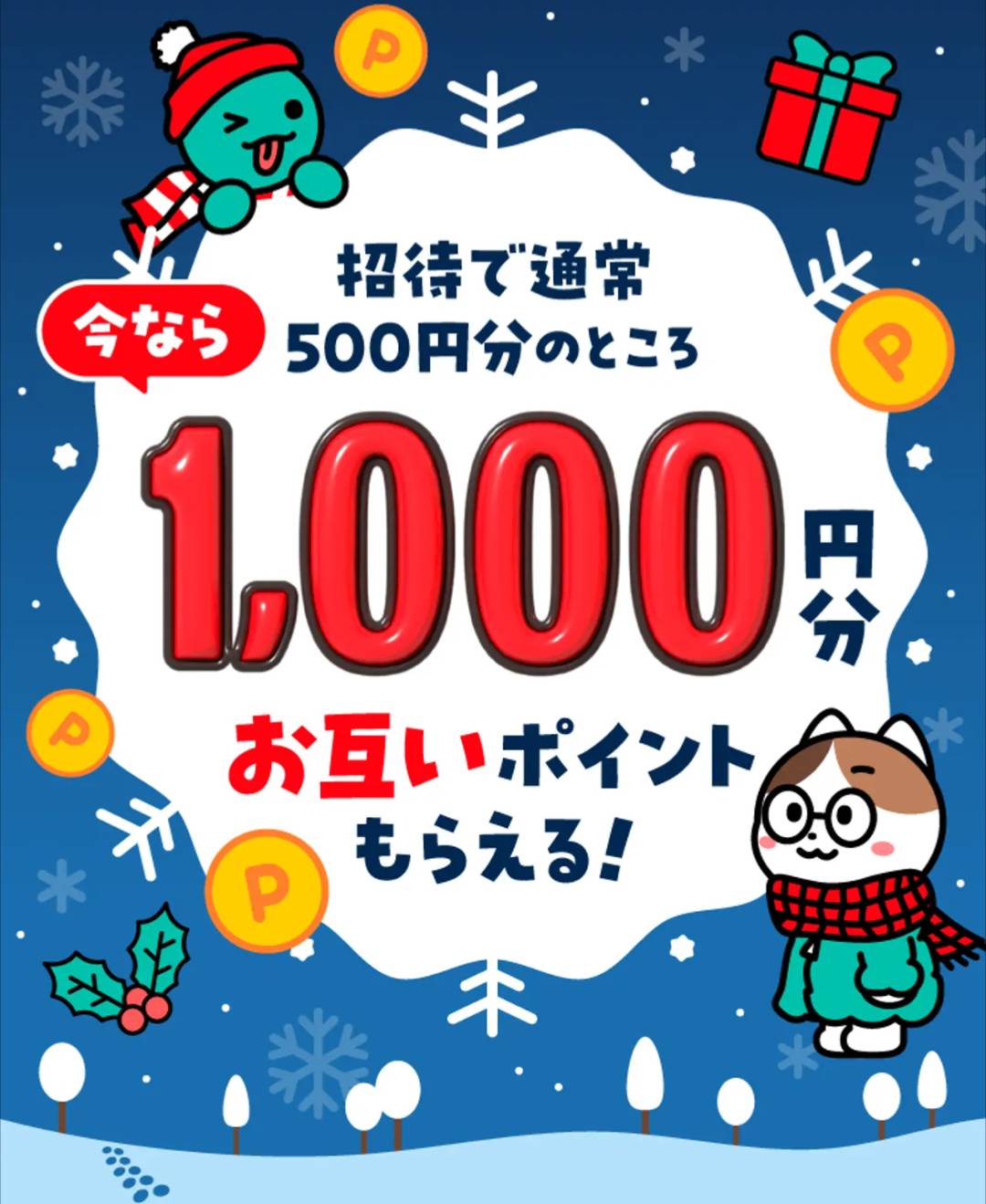招待コード&上記キャンペーンを利用すると、最大1,500円分のポイントをGETできるチャンス!是非この機会をお見逃しなく!