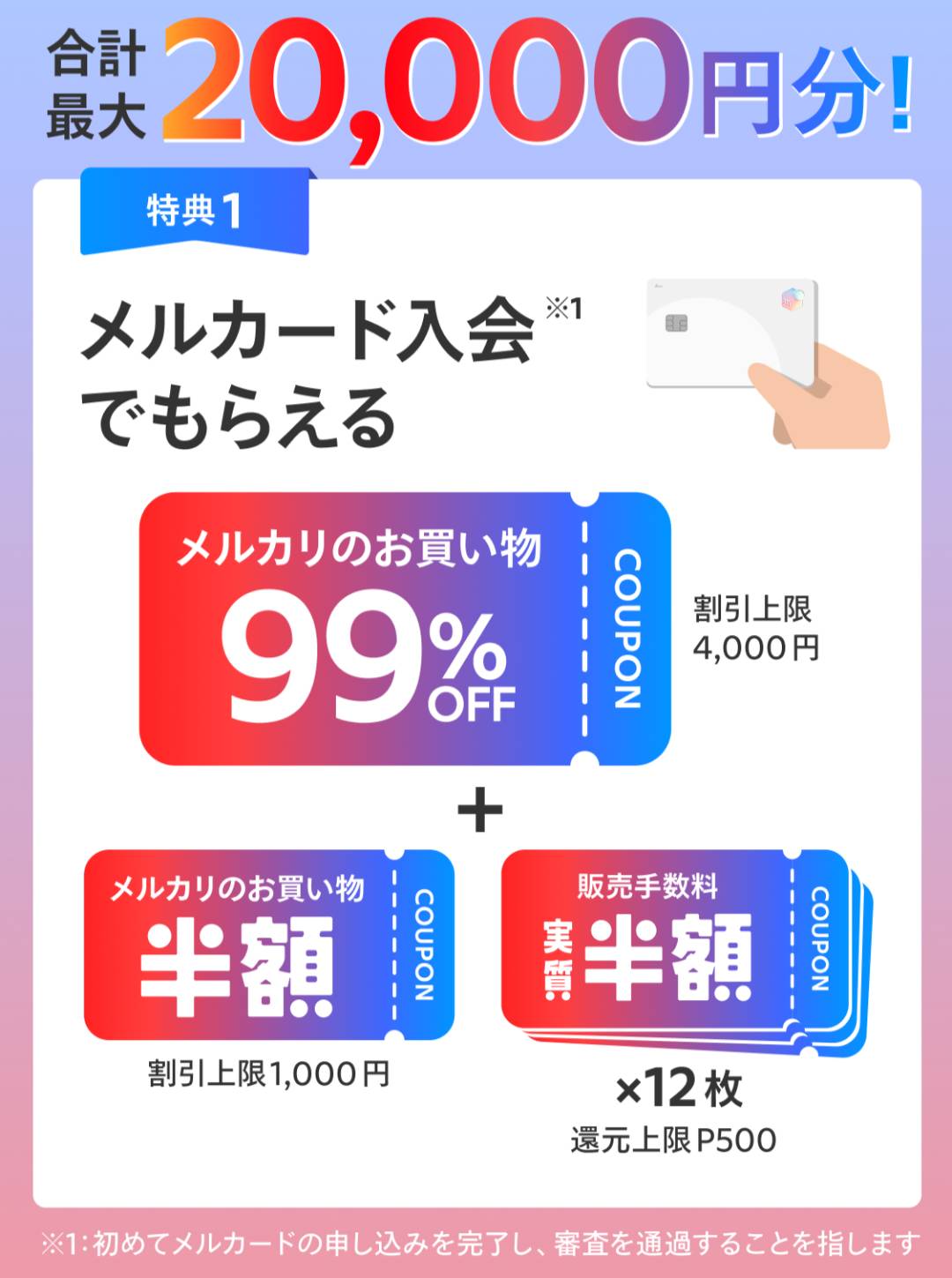メルカードに新規入会すると2つの特典で合計最大20000円分!?